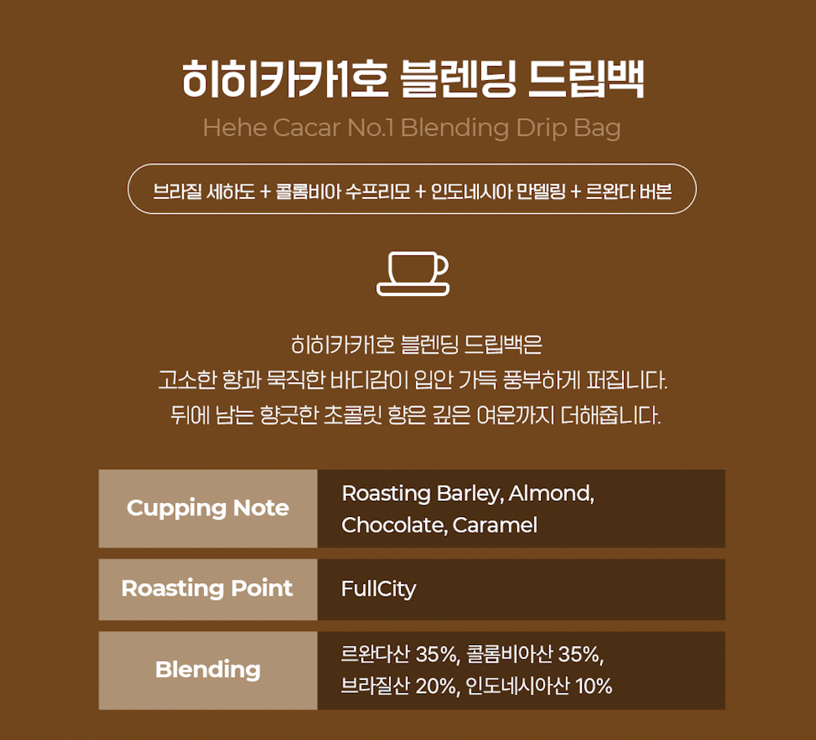 히히카카는 드립백 20개와 테이크아웃 컵 10세트가 포함되어있고